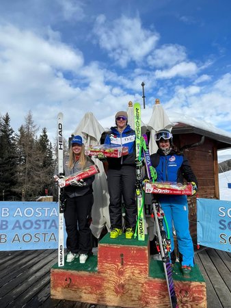 Rea Lötscher sur la 2e marche du podium à Pila la semaine dernière © FB NLZ Ouest