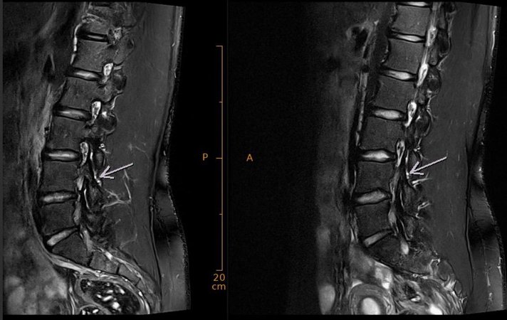 Depuis la mi-octobre, je traîne des douleurs au dos qui m’empêchent de m’entraîner sur les parcours de ski. J’avais déjà connu des douleurs la saison passée, qui étaient parties en juin, mais elles sont revenues lors des tests physiques à Macolin cet automne. Depuis, j’ai fait une IRM (photo), qui a confirmé une inflammation dans le bas du dos, accompagnée d’une forte tonicité musculaire. Les analyses ont aussi révélé une protrusion du disque intervertébral (plus d’info sur mon blog de novembre dernier).