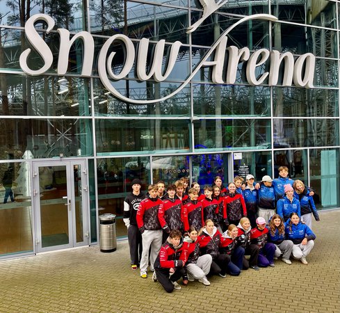 Les athlètes de la sélection devant la halle de Snow Arena © Cédric Maret